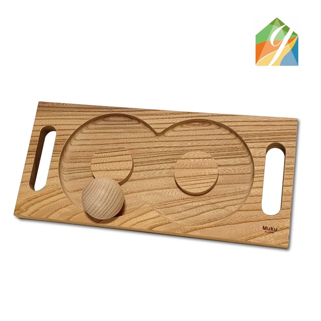 ⼦どもたちの バランス感覚・集中⼒・協調性 を楽しく育む、シンプルだけど奥が深いおもちゃ! 【商品概要】 特徴:8の字(∞)型の溝 が掘られた⽊製ボードに、⽊球 を転がして遊びます。 両端には持ち⼿の⽳があり、⼀⼈でも⼆⼈でも楽しめるデザインです。 遊び⽅いろいろ! ひとりでチャレンジ! ・⽊球を8の字に転がしたり、⽚⽅の円だけで回してみたり。 ・ボードを傾ける⾓度や転がすスピードを調整しながら、バランスを取るのがポイント! ⼆⼈で協⼒プレイ! ・ボードの両端を持ち、息を合わせて⽊球をスムーズに転がそう! ・コミュニケーションやチームワークを⾃然に学べる遊び⽅です。 保育園での活⽤ポイント ・ハンドアイコーディネーション(⼿と⽬の協調運動)を育てる! ・ ⼒加減やバランス感覚を楽しくトレーニング! ・ 友達と協⼒しながら遊ぶことで、思いやりやコミュニケーション能⼒もアップ! コロコロ∞(むげん)ボード は、遊びながら⾃然と学びが⽣まれるおもちゃです。 保育園でのアクティビティや⾃由遊びにぜひ取り⼊れてみませんか? 商品サイズ 本体サイズ:約300×18×140mm (⽊球45φ) セット内容 本体×1、⽊球×1、簡易説明書付き